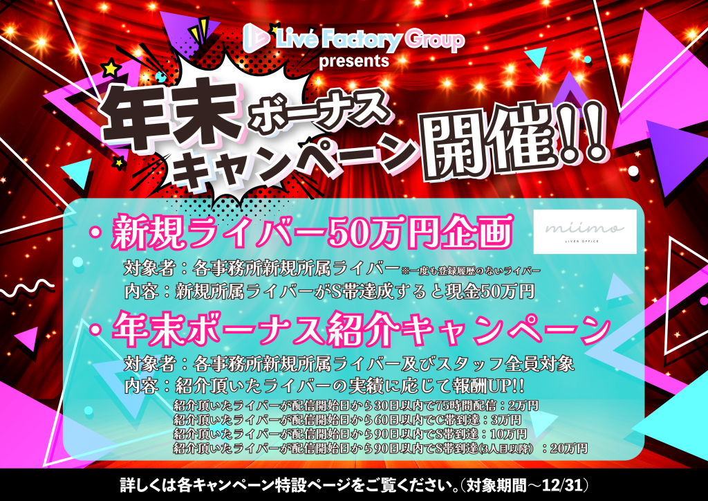 数多くのライバー事務所を直営で展開するグループでの運営なので安心!!